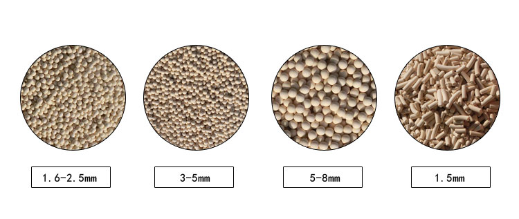 其型號(hào)有:3A(鉀A型)、4A(鈉A型)、5A(鈣A型)、10Z(鈣Z型)、13Z(鈉Z型)、Y(鈉Y型)、鈉絲光沸石型等。它的吸附能力高、選擇性強(qiáng)、耐高溫。廣泛用于有機(jī)化工和石油化工,也是煤氣脫水的優(yōu)良吸附劑。在廢氣凈化上也日益受到重視。